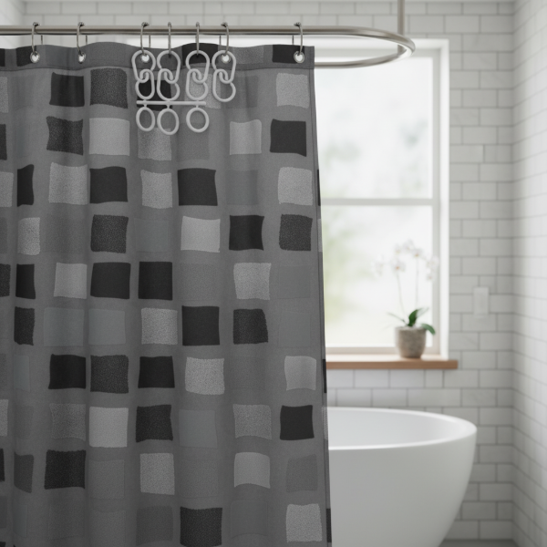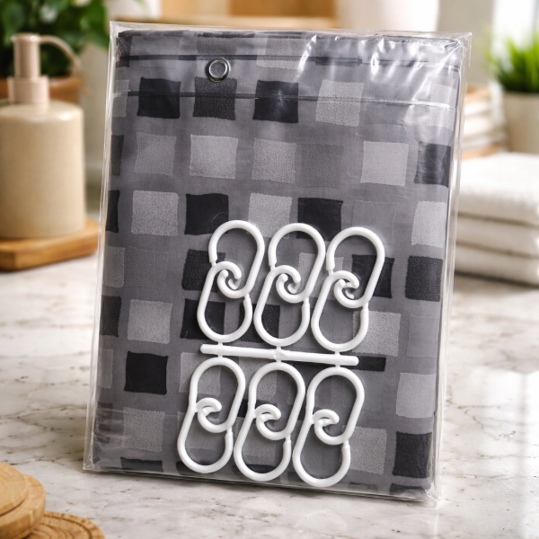 CORTINA DOBLE PARA BAÑO "VENECITAS OSCURAS " PREMIUM + GANCHOS
