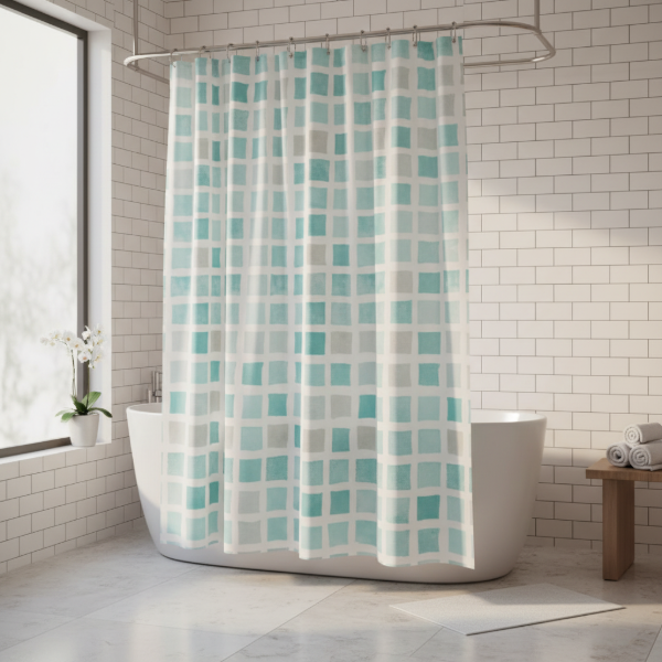CORTINA DOBLE PARA BAÑO "VENECITAS VERDE AGUA " PREMIUM