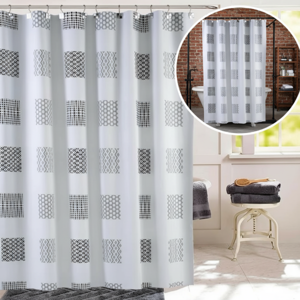 CORTINA PARA BAÑO SIMPLE PESADA TOP AUALITY "CUADROS PAMPA"