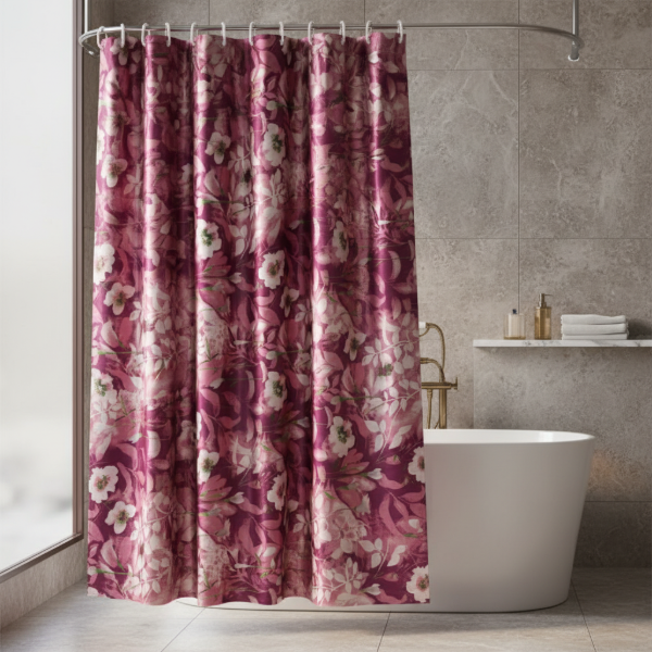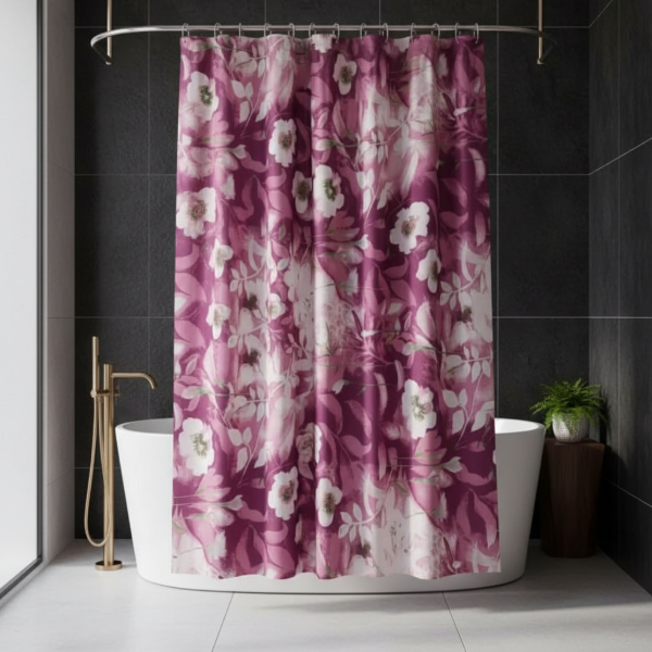 CORTINA PARA BAÑO DE RASO TEFLONADA ESTAMPA "FLORES"