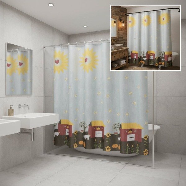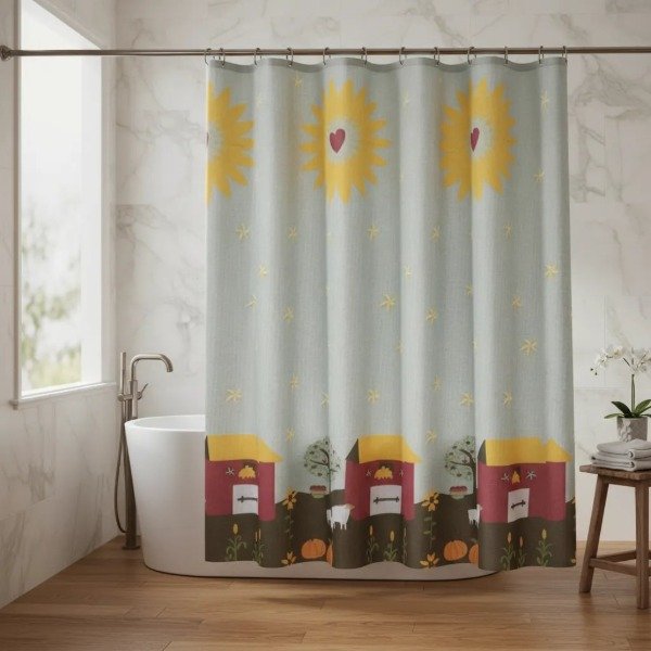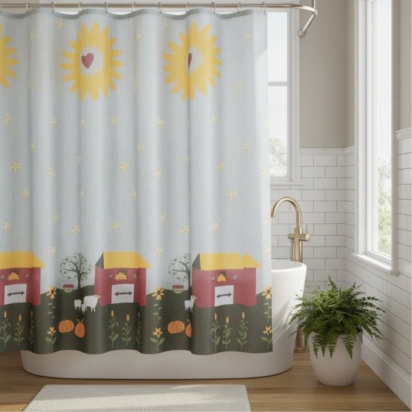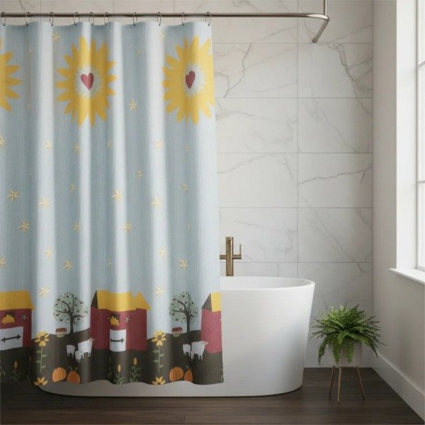 CORTINA PARA BAÑO DE RASO TEFLONADA ESTAMPADA "CASA DE CAMPO"