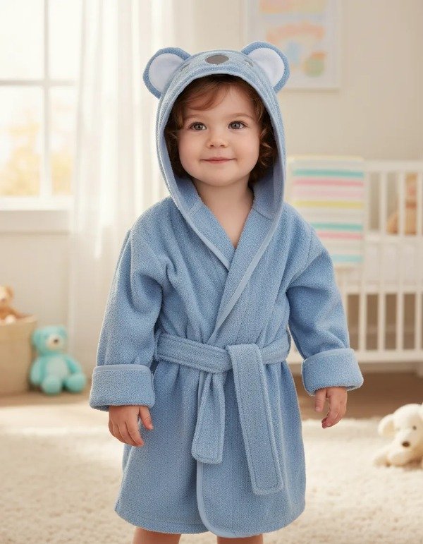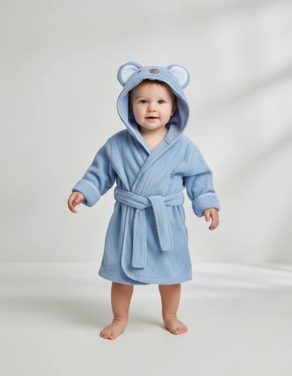 Bata Koala Celeste, para Bebé con Aplique Bordado
