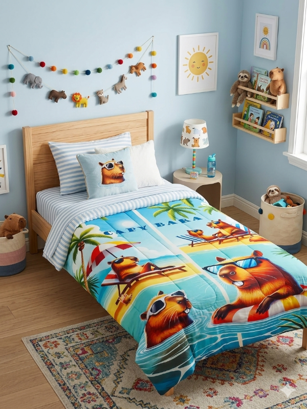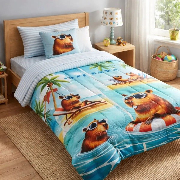 Acolchado Infantil "Capybara/Playa" 1 1/2 Pl. Diseño 3D