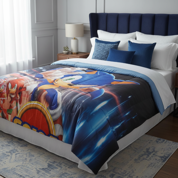 Acolchado Infantil "Sonic" 1 1/2 Pl. Diseño 3D