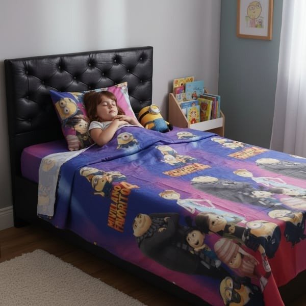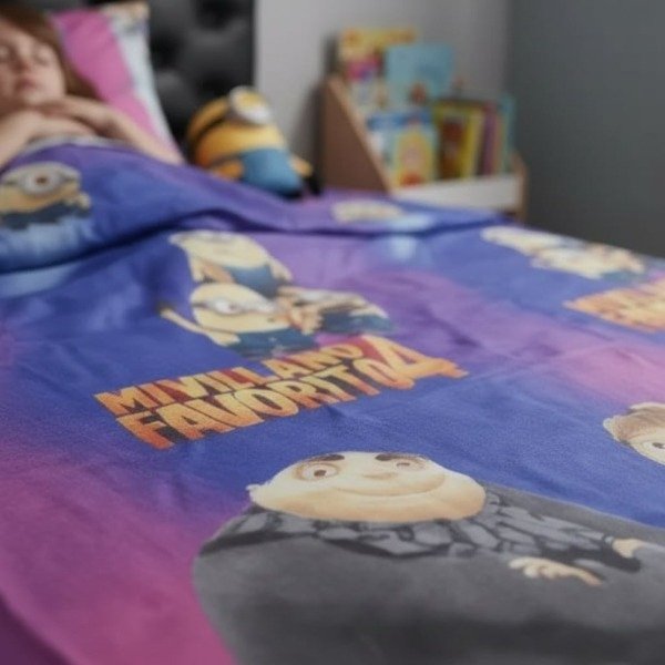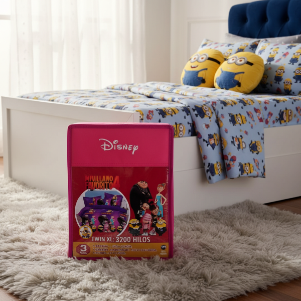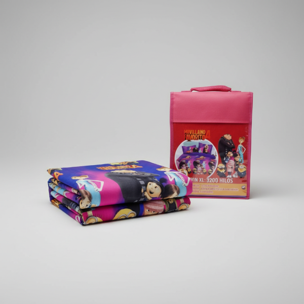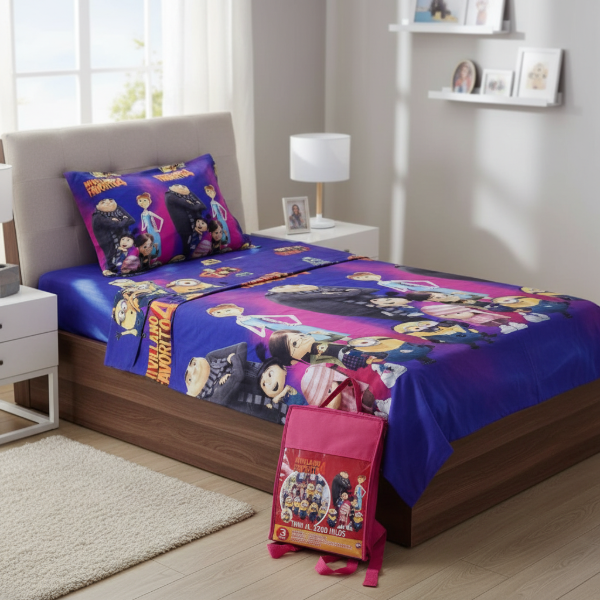 Juego de Sábanas Infantil "MI VILLANO FAVORITO" Twin con Mochi Rosa !