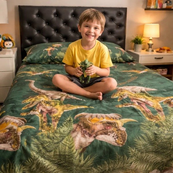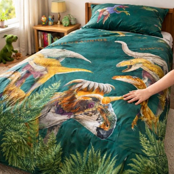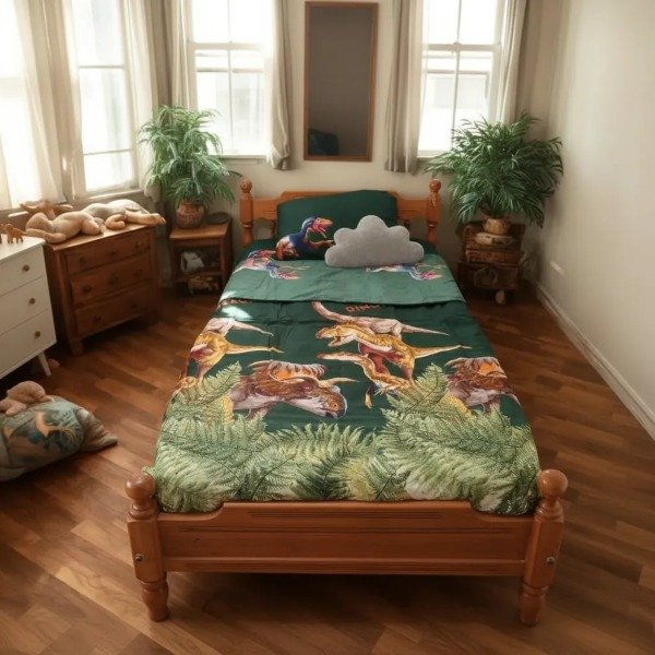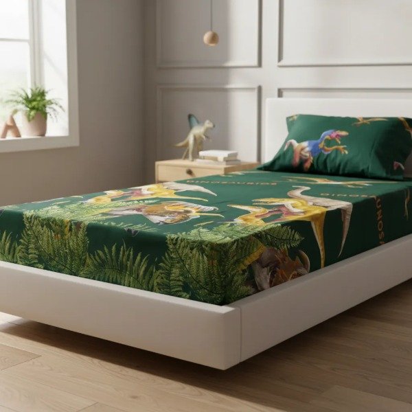 Juego de Sábanas Infantil "DINOSAURIOS" Twin con Mochi Azul !