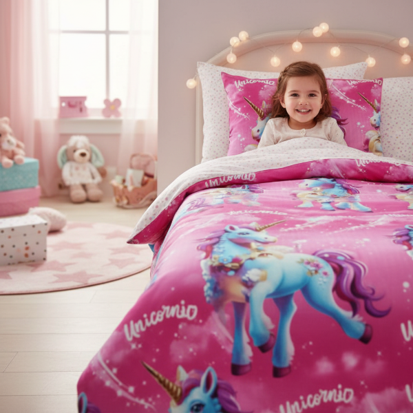 Juego de Sábanas Infantil "UNICORNIO" Twin con Mochi Rosa !