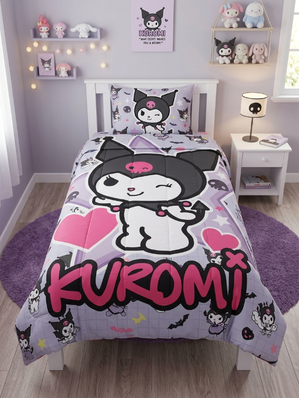 Acolchado Infantil "Kuromi" 1 1/2 Pl. Diseño 3D
