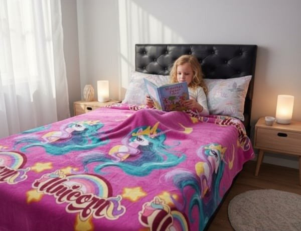 Manta de Plush 2 Plazas "UNICORNIO" Reverso Corderito
