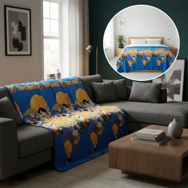 Manta de Plush 2 Plazas "Dragon Ball Z" Con Corderito