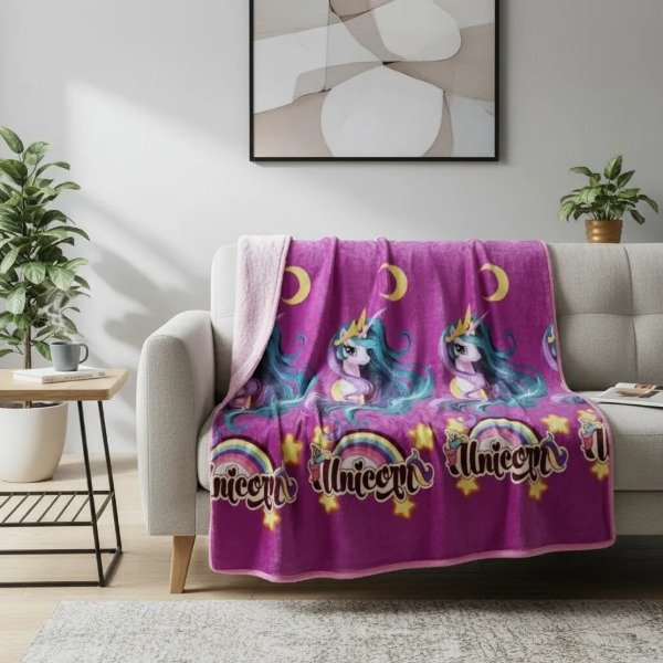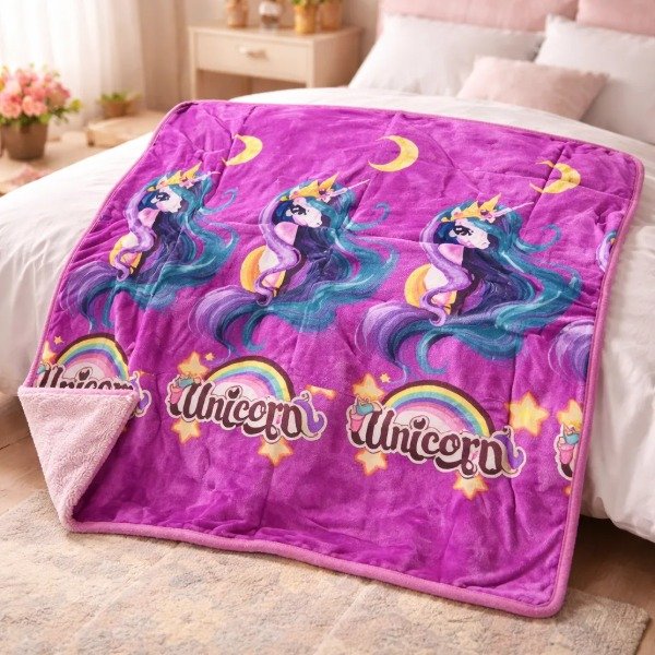 Manta de Plush 2 Plazas "Unicornio" con Corderito