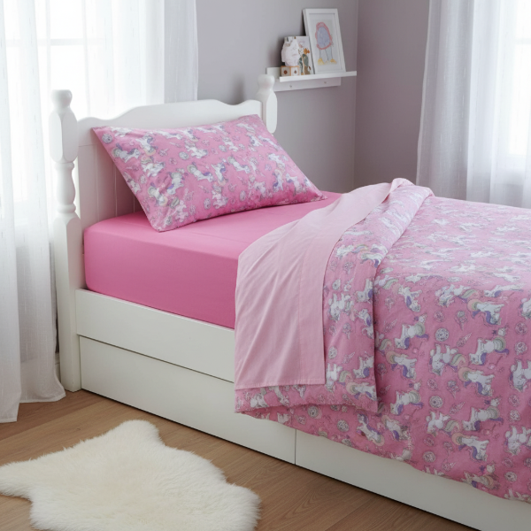 Juego de Sábanas 1 1/2 Pl. "UNICORNIO" Infantil Nenas