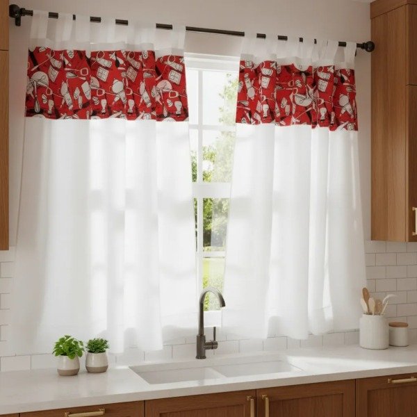 Cortinas de Cocina de Microfibra con Faldón "Utensillos"