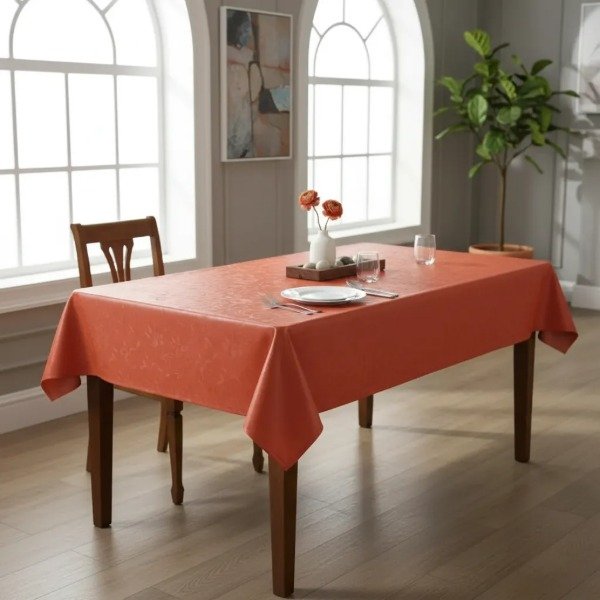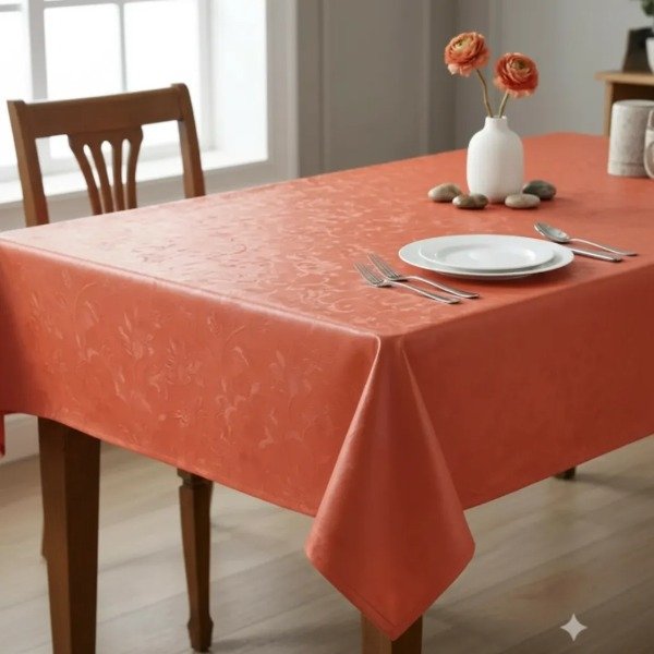 MANTEL ANARANJADO DE PVC GOFRADO FINO + FELPA 140 X 180 CM