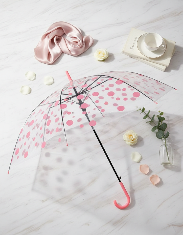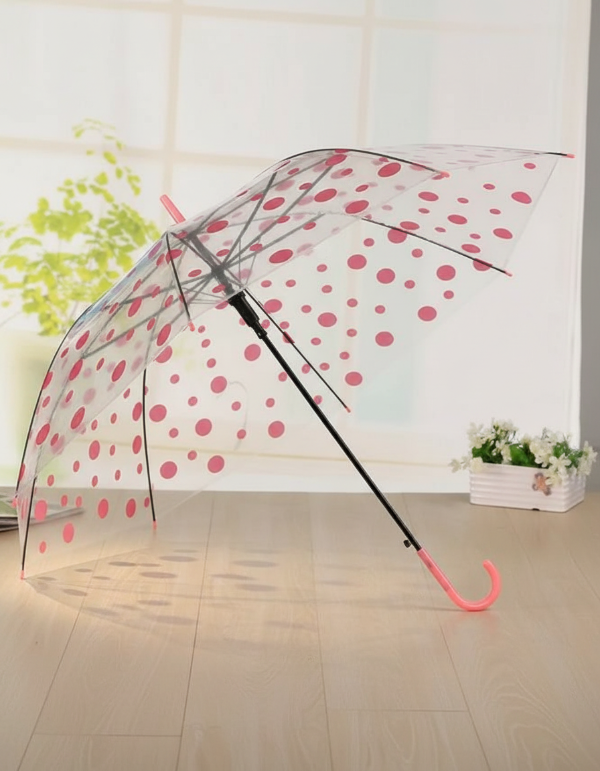 Paraguas Transparente con Diseño de Lunares Rosa